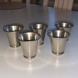 5 pcs Pewter glasses, shot glasses, Egg cups, Nåtab Götene Svenskt Tenn