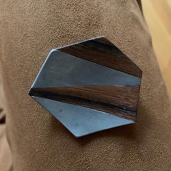 Brooch in pewter joined with teak
