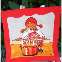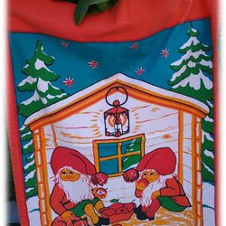 Christmas cloth red with white elves, hearts and stripes Older
