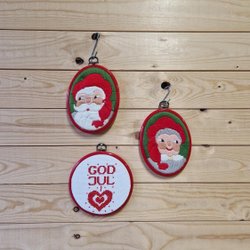 Three embroidered paintings with round shapes, Santa Claus & Father Santa, Merry Christmas,