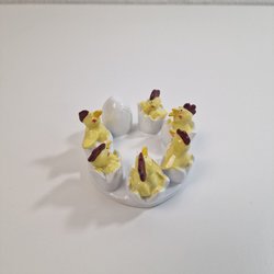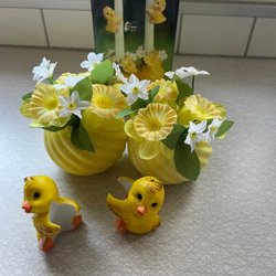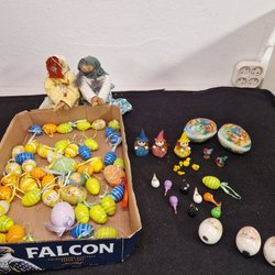 Om man vill ordna påskstämning i hemmet till en billig peng är Tradera en ypperlig plats att leta efter prisvärda påsksaker. Här finns annonser för det mesta som har med påsken att göra, inklusive begagnade påskdukar, bordstabletter, löpare, gardiner, kuddar och väggbonader med klassiska påskmotiv – både i nyare design och i retrostil. Prydnadskycklingar, påskharar, äggkoppar, gula ljus, ljusstakar och manschetter är andra vanliga påsksaker som ofta dyker upp i utbudet. Precis som påskgummor, tuppar, hönor och ägg i olika varianter. Förutom handmålade prydnadsägg, traditionella påskägg och godisgömmor av olika slag kan man även ha turen att stöta på begagnade designerägg i nyskick från formgivare som Lasse Åberg och Ulrika Hydman Vallien. Man kan också hitta äggvärmare och andra virkade påsksaker med fina mönster, liksom mängder av fjädrar och mindre pynt att hänga i påskriset. Däribland hela set med små påskkycklingar, glasdroppar, ägg, virkade blommor, hjärtan, skruvar, harar och liknande figurer. Tillgången på påsksaker varierar beroende på aktuella annonser, men oavsett vilken typ av påskpynt man föredrar att pryda sitt hem med finns det goda chanser att hitta någonting man tycker om här på Tradera.