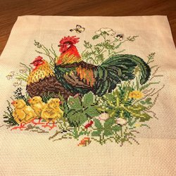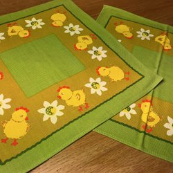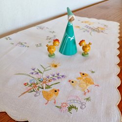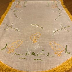 Hand-embroidered Easter Tablecloth Runner Chicks Spring Flowers Eggs Cross Stitch Aida Fabric Easter