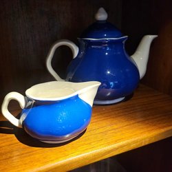 Various retro household items in blue