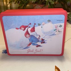 God Jul Plåburk med lekande barn i snön Adina Sand