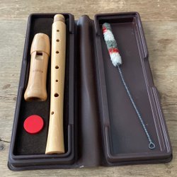 Blockflöjt med tillbehör i original låda från Alexander Heinrich