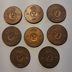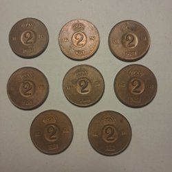 Mynt Sverige 2 öre 8 pieces in a row