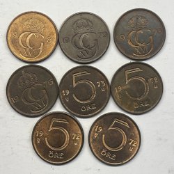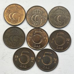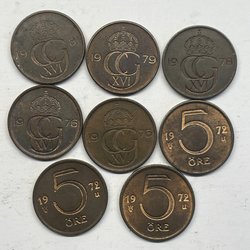 5 öre 1981, 1979, 1976, 1976, 1973, 1972, 1972, 1972