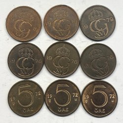 5 öre 1981, 1979, 1978, 1976, 1976, 1972, 1972, 1972