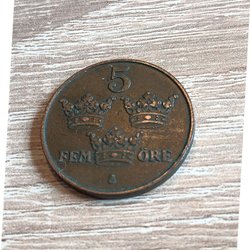 Five Öre from 1937. SWEDEN.