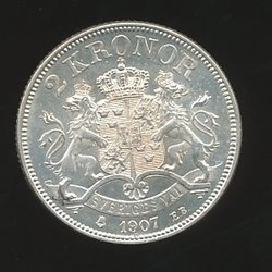 2 Kronor - Oscar II - 1907 kv 01/0