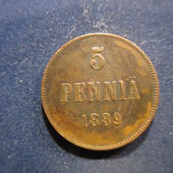 FINLAND 5 PENNIÄ 1889