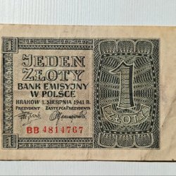 Old Polish banknote 1 Zloty from 1941!