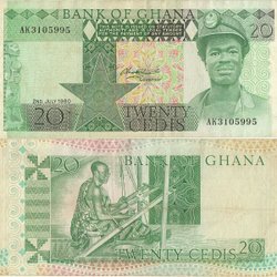 1980 (2 July), 20 Cedis - Ghana | P-21b | XF+
