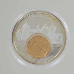 Silver-plated copper (with gilded insert) coin, diam 35 mm, 23.5 gr