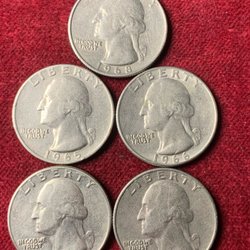 LIBERTY HALF DOLLAR, 5 pcs, 900/1000 silver, 62.69g, years 1952,1964,1946,1962 198