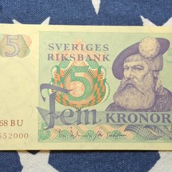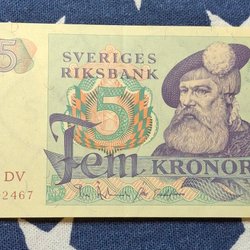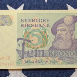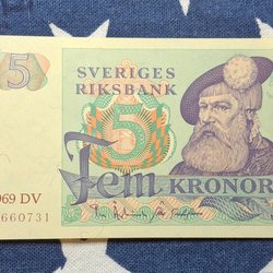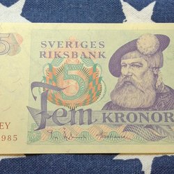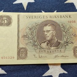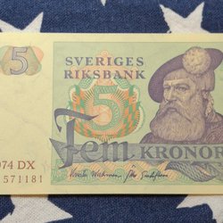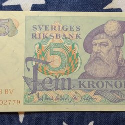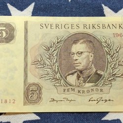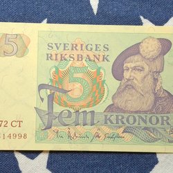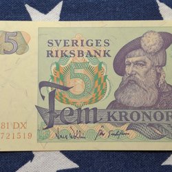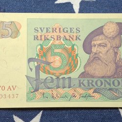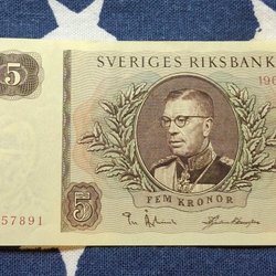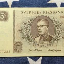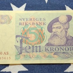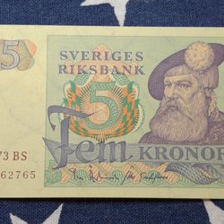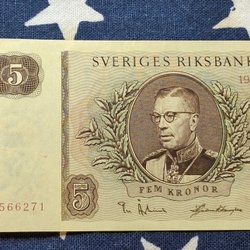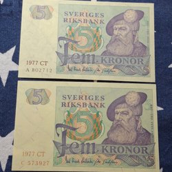 3 pcs. OVIKTA Svenska Fem Kronor banknotes from the years 1965,1966,1981. Qual.10