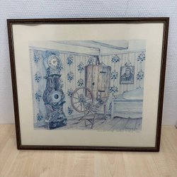 Reinhold LJUNGGREN Signed lithograph "Interior with tiled stove", 1986