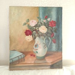 Oil painting on canvas of a still life with flowers, signed Shebely(?)