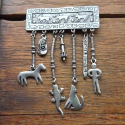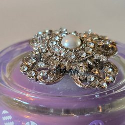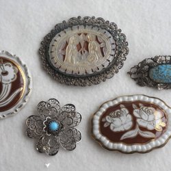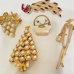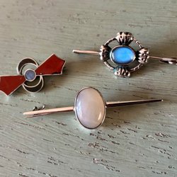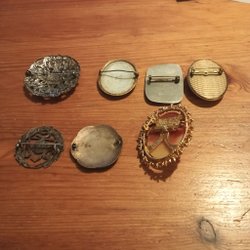 Broscher förknippas ofta med ädelstenar, guld och silver. Trenderna genom årtiondena har dock även lämnat plats för retrobroscher och färgglada plastvarianter. Broscher finns i ett närmast oändligt antal olika varianter, både trendiga och klassiska. I Traderas utbud av begagnade broscher kan man hitta broscher silver och broscher guld. I allra bästa fall finns en Chanel brosch eller två ute för auktion – en dröm för den som gillar att klä sig klassiskt stilrent. Den som vågar ta ut svängarna har ofta ännu mer att hämta. Broscher, smycken och kläder är ett intresse som delas av många. Individuella preferenser styr garderobens innehåll och dessa förändras över tid. Titta igenom utbudet av aktiva annonser så kan du upptäcka broscher som gjort sitt i en persons smyckesgarderob, men som blir huvudnumret i din. Hos Tradera har du möjlighet att hitta begagnade broscher i alla prisklasser, från slutsålda varianter från budgetkedjorna till diamantprydda varianter från välkända juvelerare.