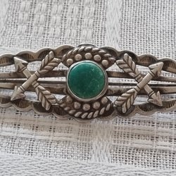 Antique silver brooch with green in the middle
