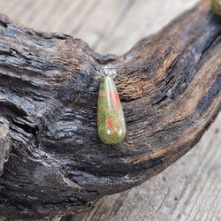 Unakite drop, silver plated pendant