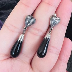 Vintage Äkta silver genuine natural black onyx stone earrings