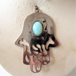Vintage pendant in bronze color with black shine & turquoise detail