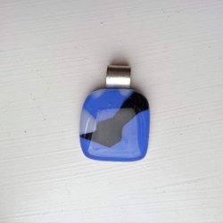 Lampwork glashänge till halsband. Blå kvadrat.