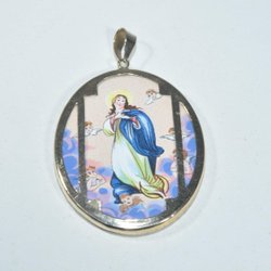 Pendant oval painted stone, length 5 cm, width 3 mm, 14k 10.7gr