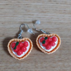 Very nice earrings with 2 heart-shaped, red JADE stones