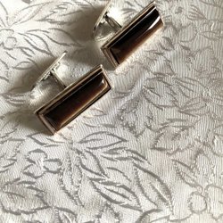 Cufflinks.genuine silver.Tiger's eye.24X10mm.-60s.New for older goldsmith shop