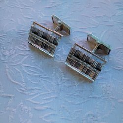 Cufflinks.genuine silver-50s.Grinded pattern stripe.Unused.from goldsmith.Retro
