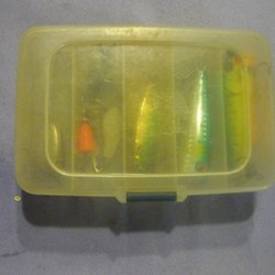 Fiskedrag, box with mixed lures.
