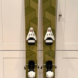 Red lot with Marker Ski Bindings