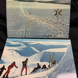 Dalarna Winter motif 2 postcards, snow cabins winter skiing