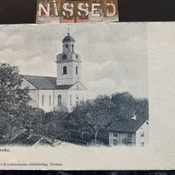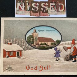 Small semi-topographic postcard Santa and Frändefors church Hand-colored