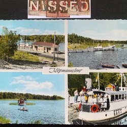 4-picture card from Köpmannebro including the railway station