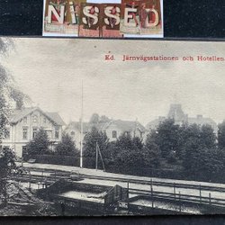 Ed Järnvägstationen och hotellen . stamped PLK 386 postal 75 , kornsjö-Mellerud