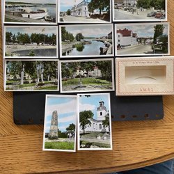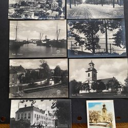 7 small postcards Åmål + a picture