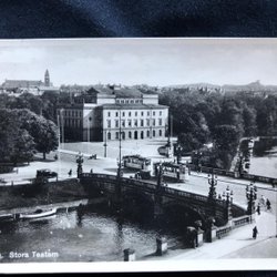 Gothenburg's great theater with tram and folk life Lorensberg