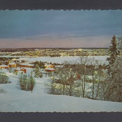 Östersund. View of the city at night. Postcard size A6 card.