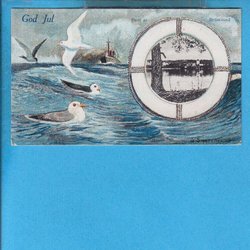 STRÖMSUND. Small semi-topographic with boat, seagulls + town view in lifebuoy 1917