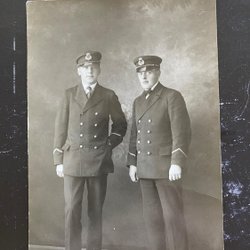 Authentic photographic postcards 2 railway staff from Bräcke station
