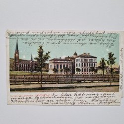 Postcard The Church and the School. Sundsvall, 1908