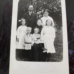Authentic photographic postcard The trader with family photo S.Carlsson Älghult