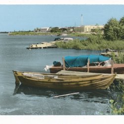 Figeholm Figeholms Bruk in the background Träbåtar in the foreground Oskarshamn Colored K8 9