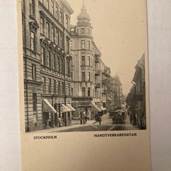 Postcard Stockholm Handtverkaregatan horse tram
