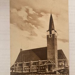 Postcard - Hjorthagens new church, Värtan has