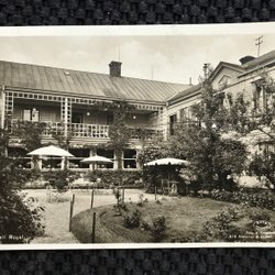 Djursätra Brunn 2 cards The Brunnsvillas and the Bath restaurant with lots of people 1930s-40s