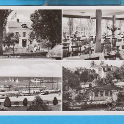 BORGHOLM. Hotel and boarding house Paradiset, 4-image advertising card 1950s